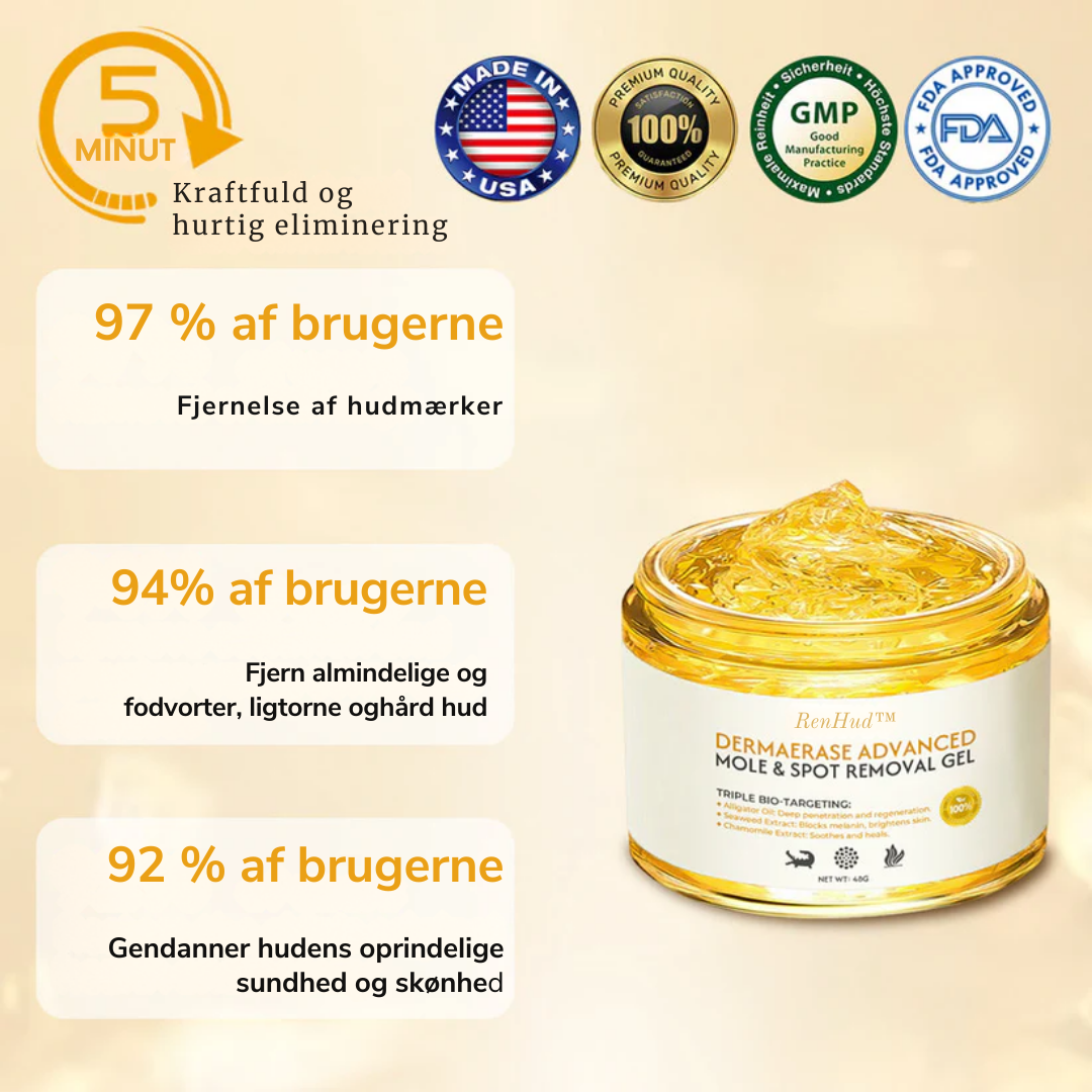 RenHud™ Gel er din hurtige og effektive løsning til at fjerne hudmærker, modermærker og mørke pletter – helt uden smerte eller dyre behandlinger.