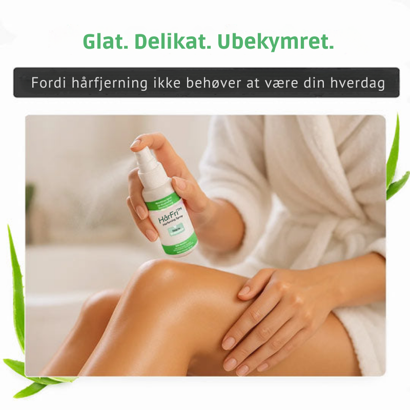 HårFri™ er en innovativ spray til smertefri hårfjerning, der ikke kun fjerner hårene på kun 60 sekunder, men også svækker hårrødderne for hver gang du bruger den. Glem alt om hudirritation, indgroede hår og daglig barbering.