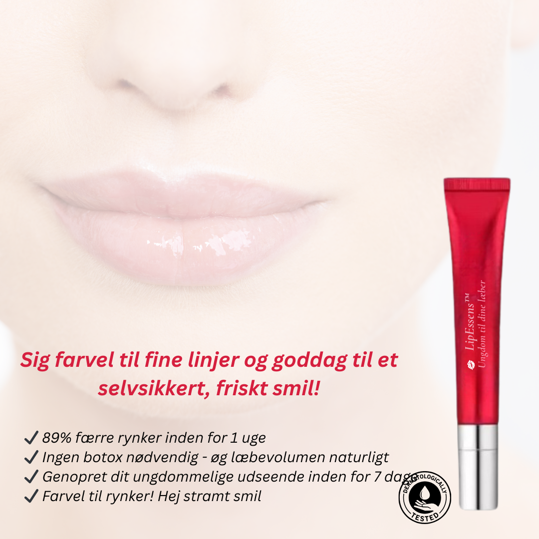 Genopdag ungdommelige læber med LipEssens™ – din hemmelige løsning mod rygerlinjer, alderstegn og rynker omkring munden.