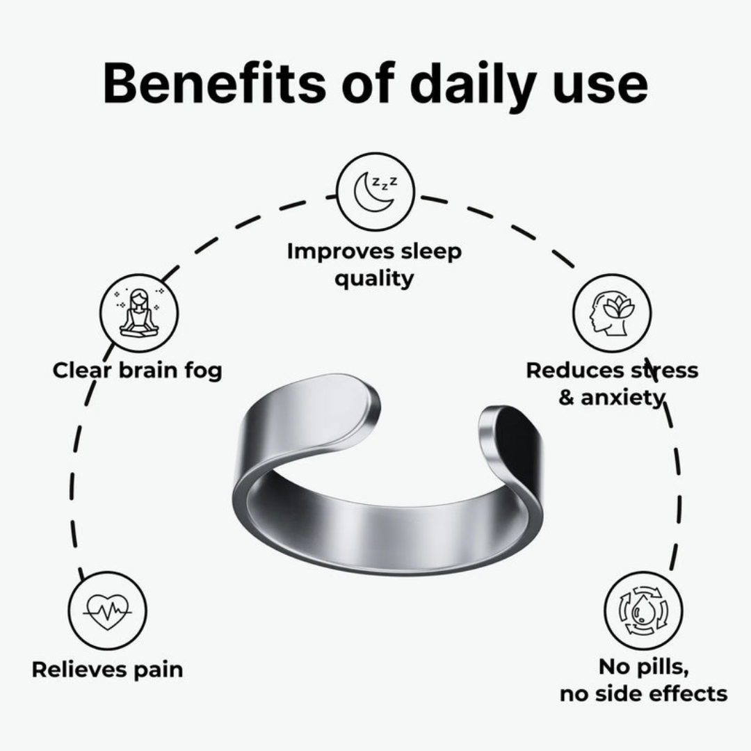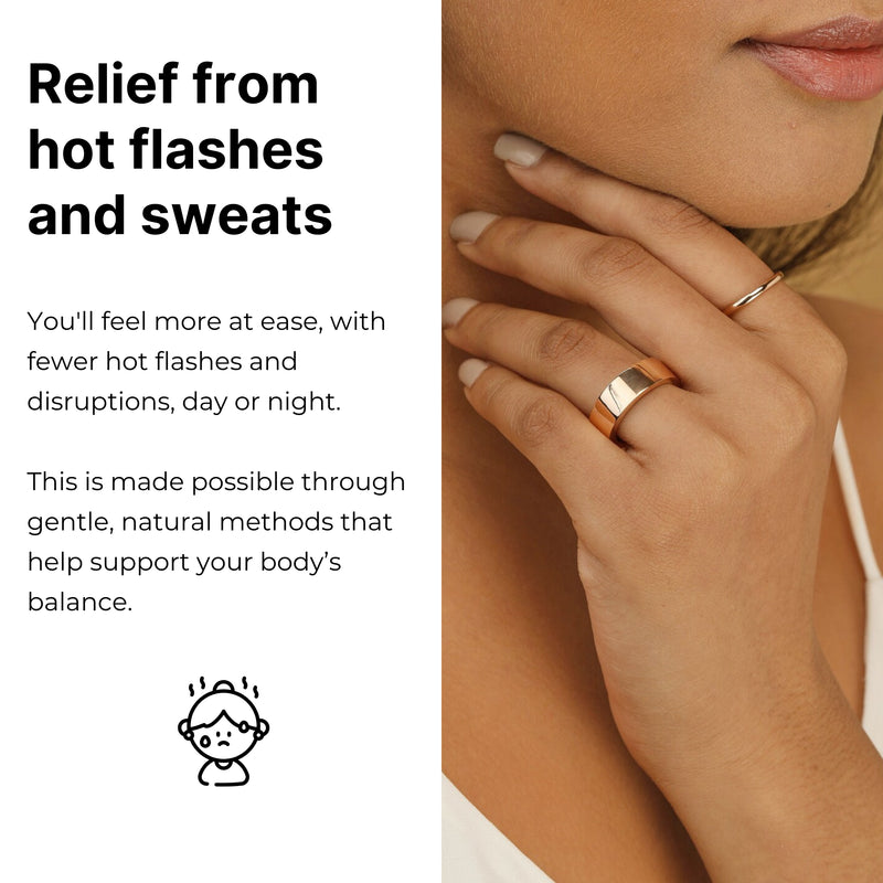 MenoRo™ er din naturlige og ikke-invasive støtte gennem overgangsalderen. Denne elegante balanceringsring kombinerer akupressur og magnetterapi for at fremme hormonel harmoni og følelsesmæssig stabilitet – helt uden medicin.